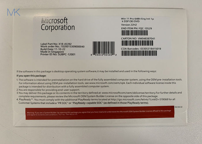 Microsoft OEM System Builder Windоws 11 Professional OEM 64 بت OEI DVD اللغة الإنجليزية 22H2